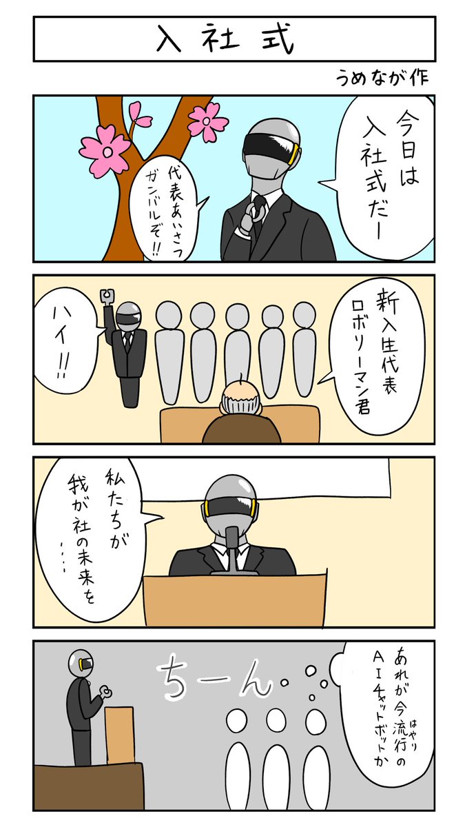 〜働け!ロボリーマン〜 第1話『入社式』 #ロボリーマン #4コマ漫画 #サラリーマン #漫画 #漫画好きな人と繋がりたい #シュールな漫画 #入社式
