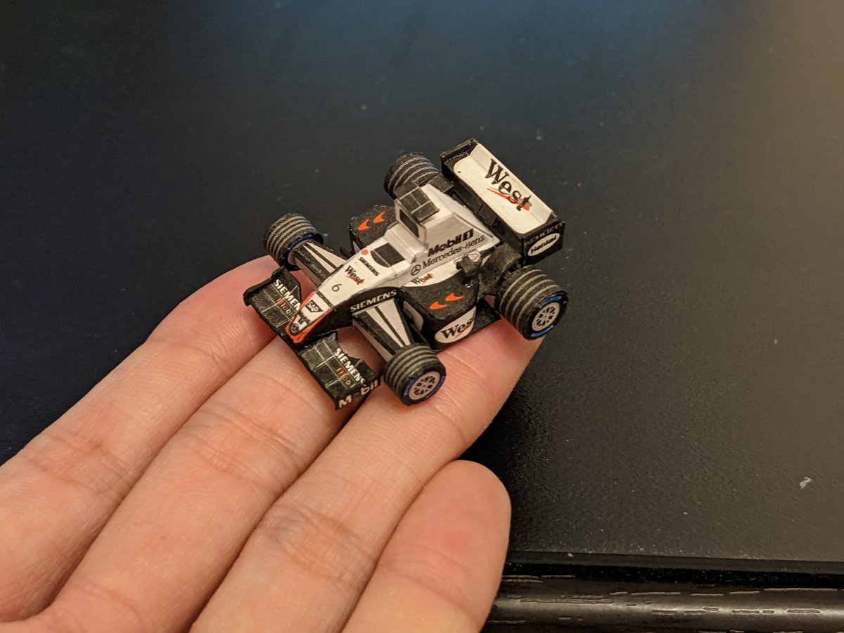 マクラーレンMP4/19(ライコネン車) ミニミニモデル完成! 半分以下のサイズに縮小印刷して作りました。 全長3.5cm! #F1 #McLaren #papercraft #マクラーレン #Raikkonen #ペーパークラフト #ライコネン