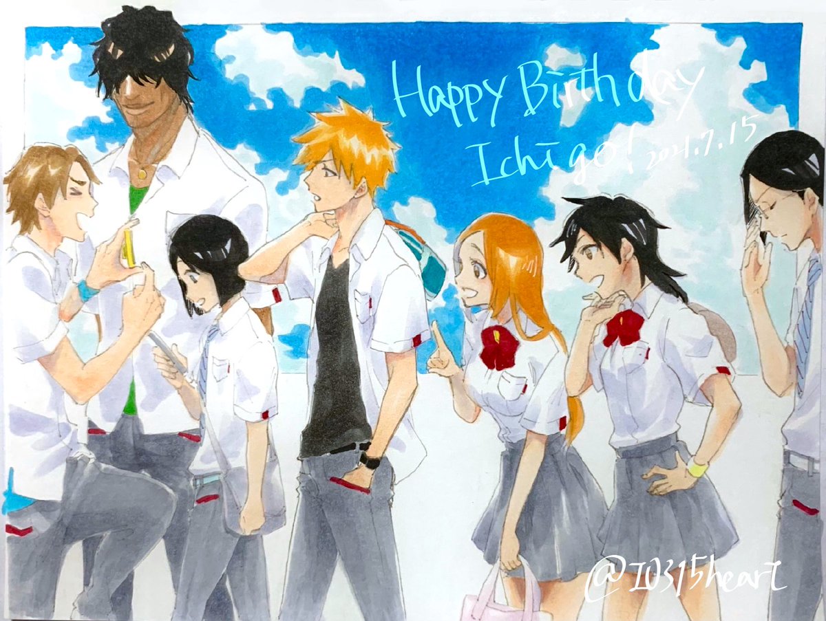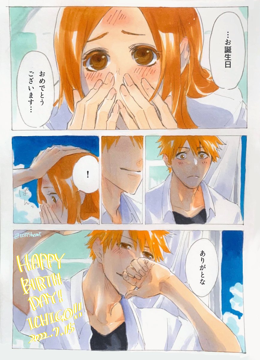 350 1765 過去絵だけどお誕生日おめでとう一護〜!!🎂💐🎈🎉🎁 (2、3枚目イチオリ高校生でお付き合い時空…) 23/07/15 00:30
