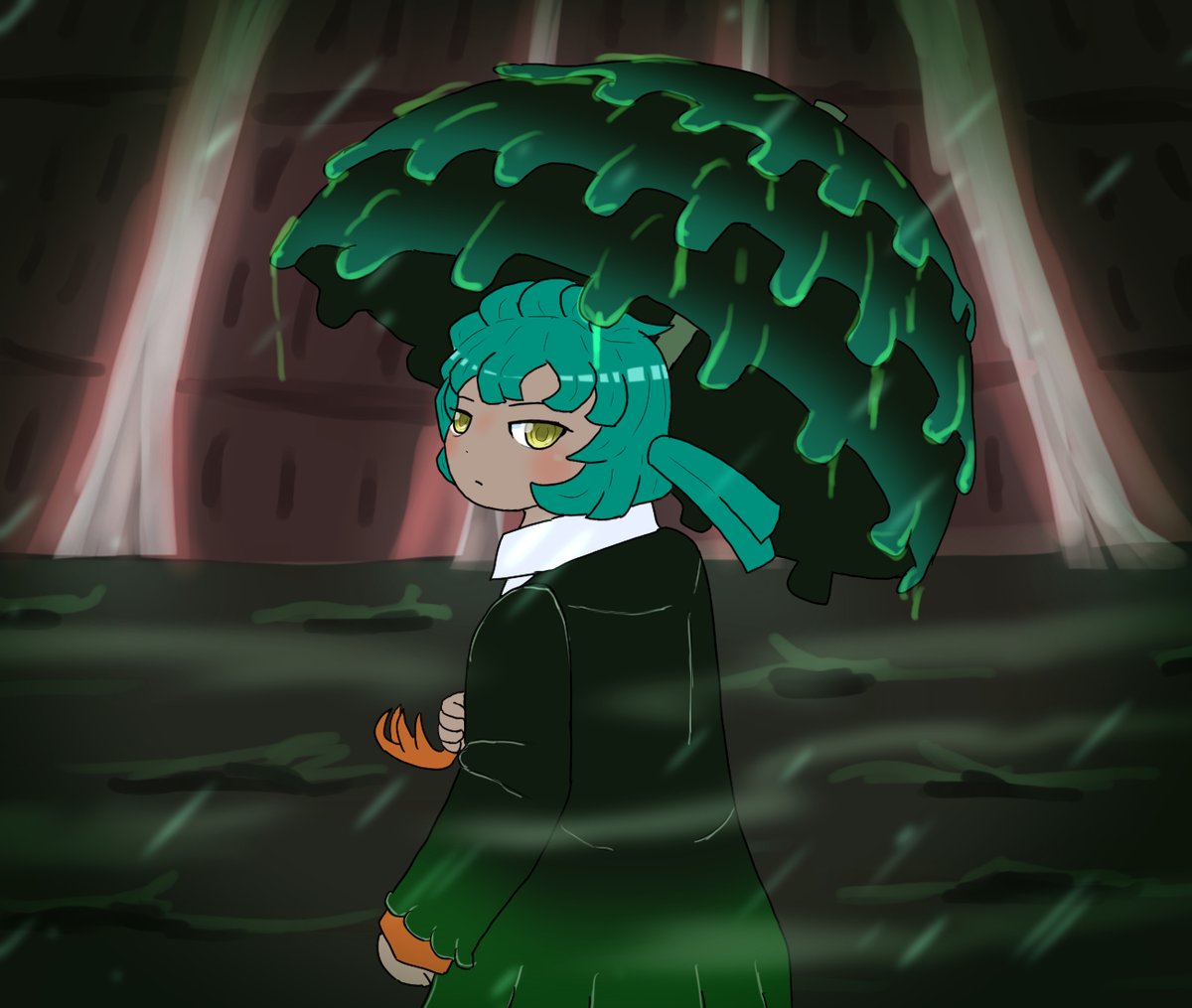 12 49 #ロボトミー版深夜の真剣お絵描き60分一本勝負 黒鳥の夢(遅刻参加) 「残されたものは、生前大切にしていた古びた日傘。」 22/04/02 23:26