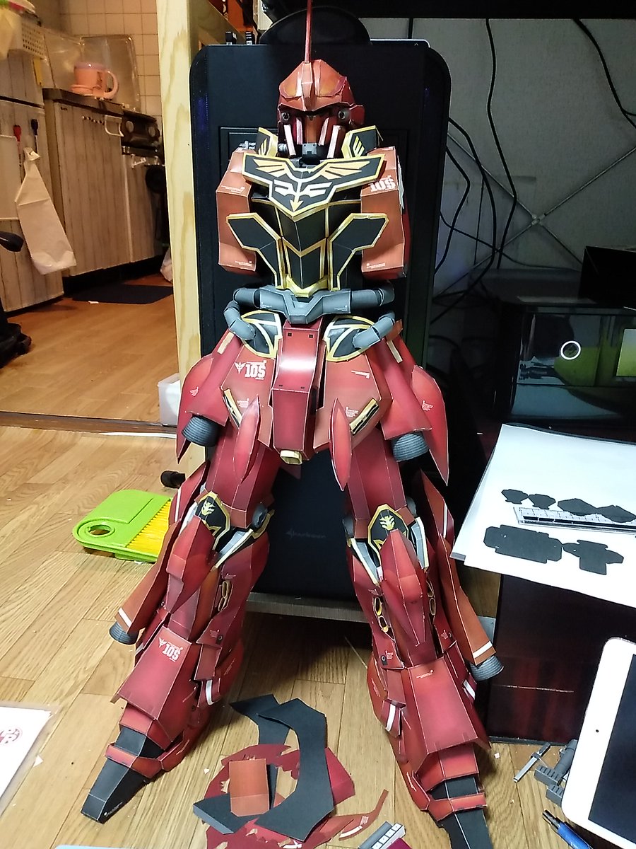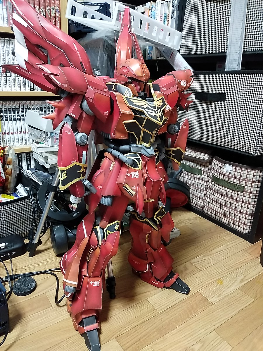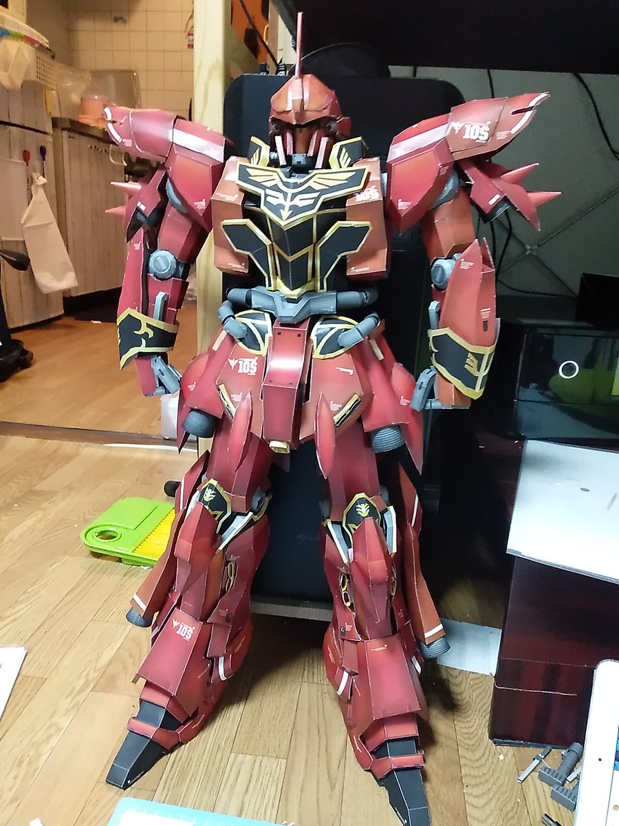 0 6 #ガンプラ #ガンダム #ペーパークラフト #シナンジュ 脚まで出来ました。約60cm ・・・デカいよ(笑) 現在は腕を作成中~。 ちなみに説明書とか無しに感覚で作ってるので組み方間違ってたりパーツが余ったりたまにします(苦笑) 22/06/14 20:38