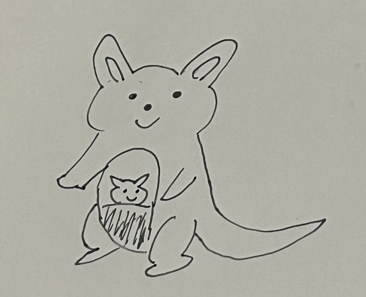 🌻動物とゆいのイラスト🌻 俺にしては、上手く描けたのでは⁉️ カンガルー🦘ゆい‼️ 本当は着ぐるみっぽくしたかった(笑) #ゆいのお絵描き @Yuiyanagida