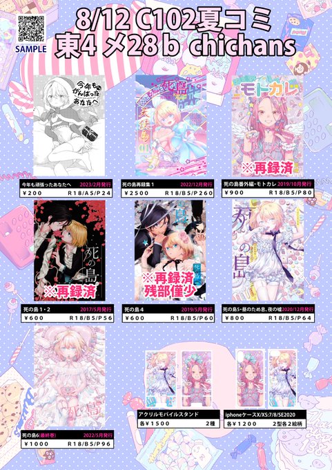 あなたのサークル「chichans」は、コミックマーケット102で「土曜日 東地区 “メ” ブロック 28b」に配置されました!コミケWebカタログにてサークル情報ページ公開中です! webcatalog.circle.ms/Circle/Map/173… #C102WebCatalog 夏コミ!マチさん(@tamani_imasuyo )と隣接でございます!#創作BL です!