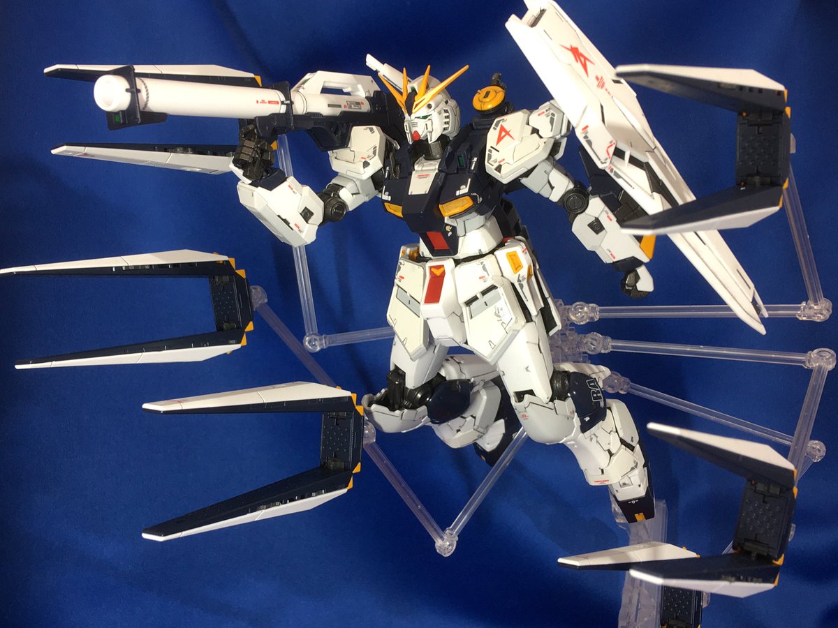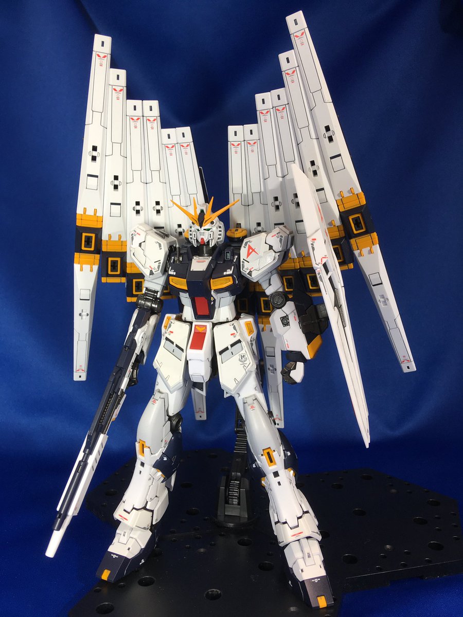 #ガンプラ #ガンプラ好きと繋がりたい #ガンプラの画像貼るとRTされると聞いて #ガンダム RG HI-ν ガンダム 、塗装、墨入れ、デカール貼り、トップコートにて完成。 ランナー塗装で始めましたが、細かいパーツにパーティングラインが多く見つかったので、結局全パーツ切り離し表面処理しました(^^)