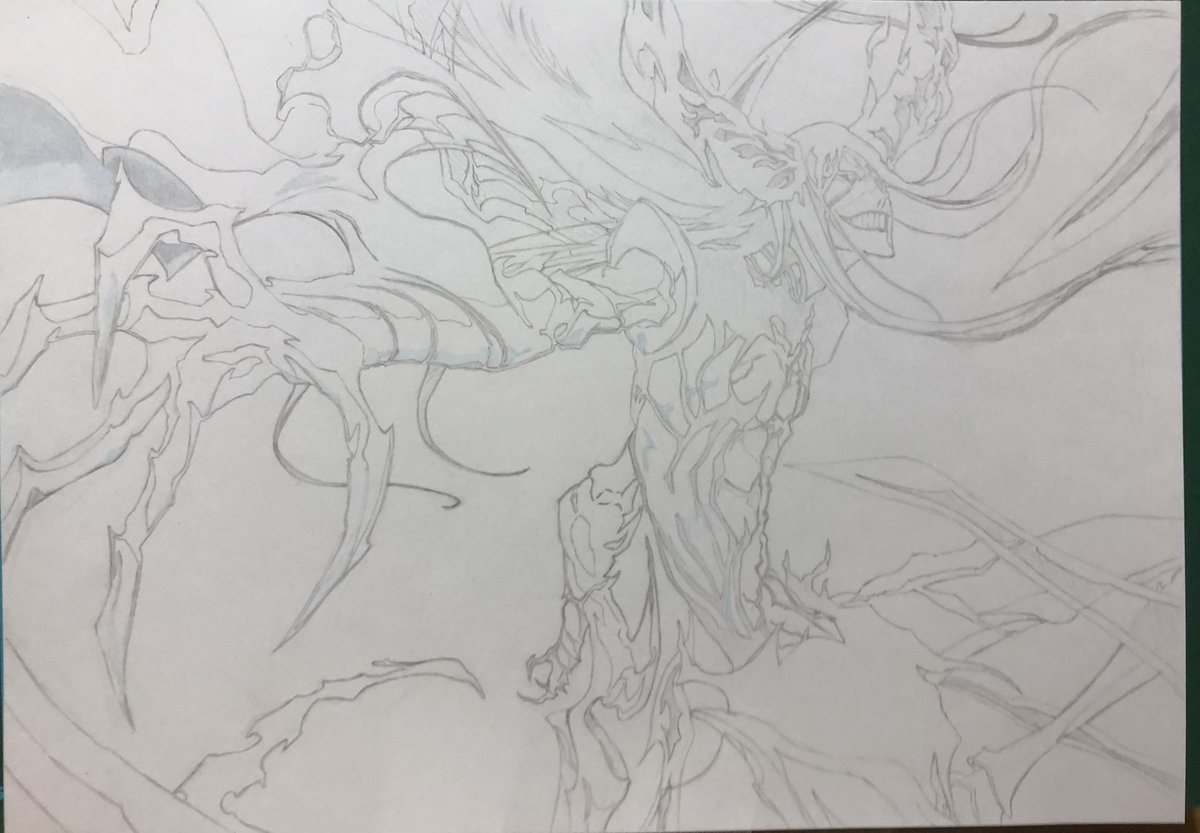 #今月描いた絵を晒そう 1枚目終わりみえてません_:(´ཀ`」 ∠): まだかかってしまいます、、