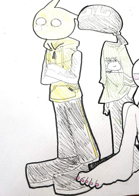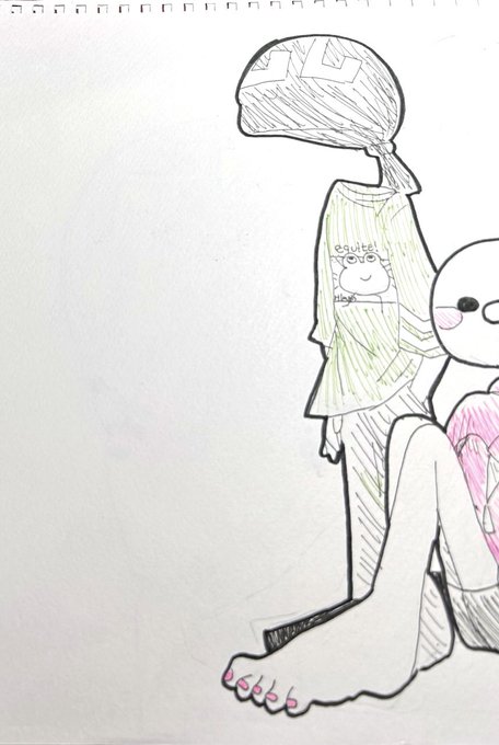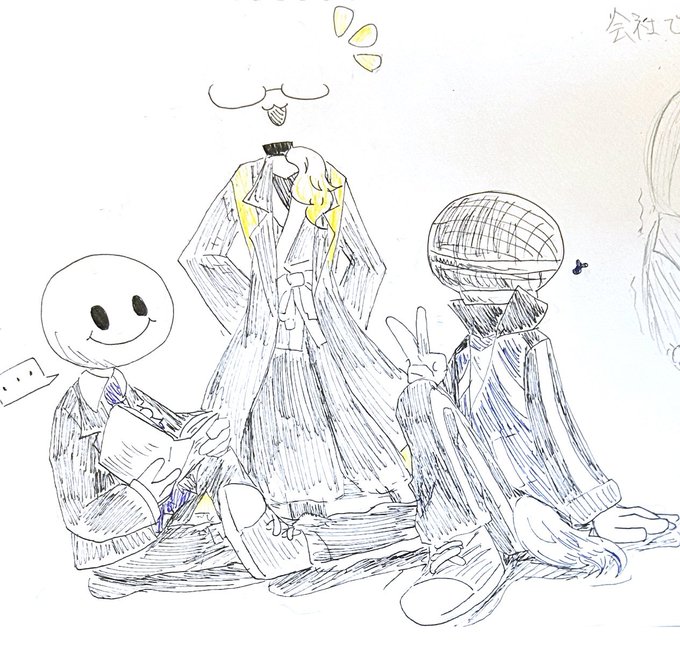 ワイテルズその1 #ワイテルズ #しろっぽ #ペン画 #アナログ画 #異形頭 #落書き #らくがき #ラクガキ #実況者