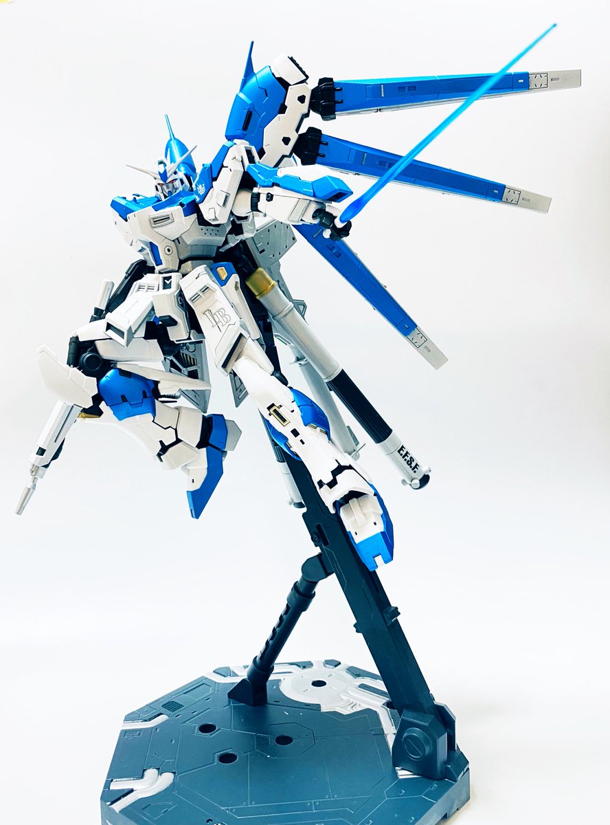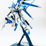 久しぶりの完成品です RG Hi-νガンダム です RG νガンダムと組み替えてスプレー塗装しました #ガンプラ #ガンプラの画像貼るとRTされると聞いて #ガンプラはどんな自由な発想で作ってもいいんだ