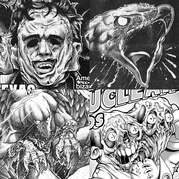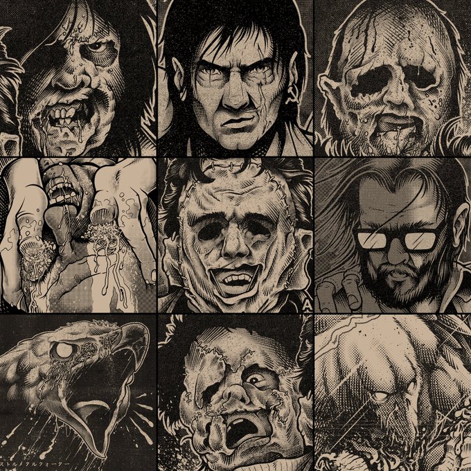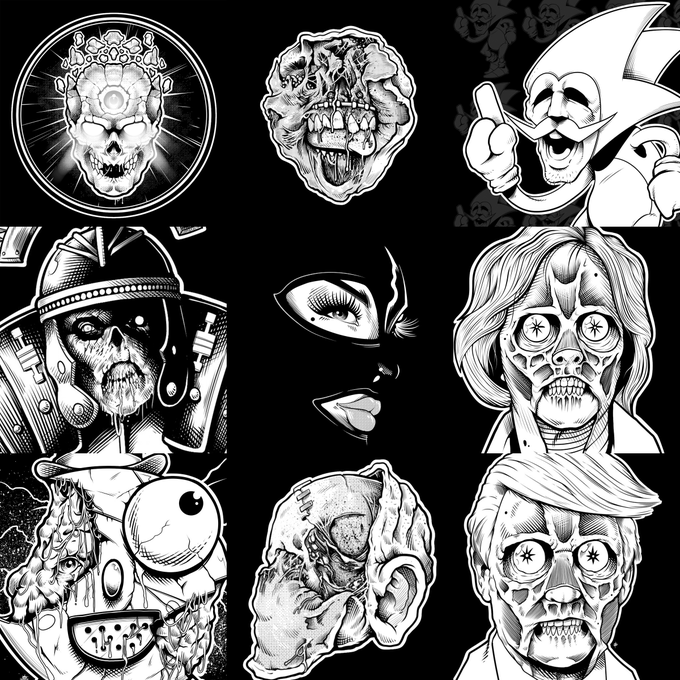 #PortfolioDay again! I'm a horror obsessed illustrator from the UK who has done work with bands, Youtubers and video games such as @JustinWhang @FlashgitzAnims @NormalBoots @Laced_audio @devolverdigital I also work fulltime in UI @Coatsink and as a solo dev on my own projects