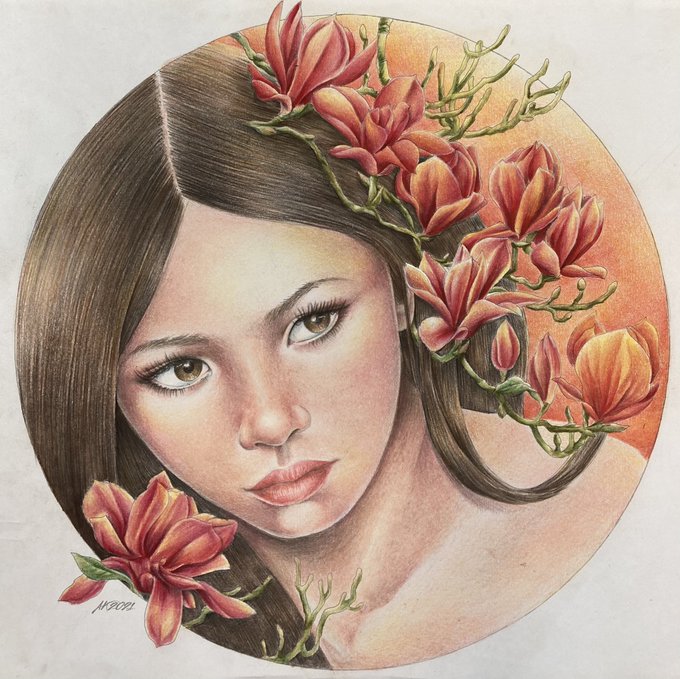 マグノリア @sachiyoart_g #大人の塗り絵 #色鉛筆 #sachiの塗り絵