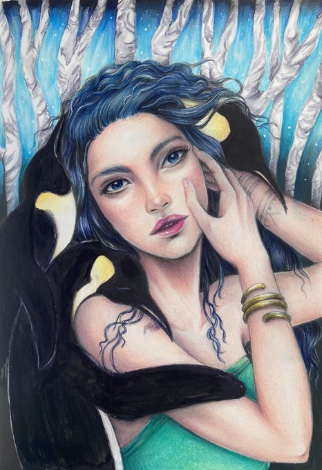 1 13 双子 @kuroimori_twee #大人の塗り絵 #色鉛筆 #ヴィクトリアン幻想図鑑 23/02/28 13:32