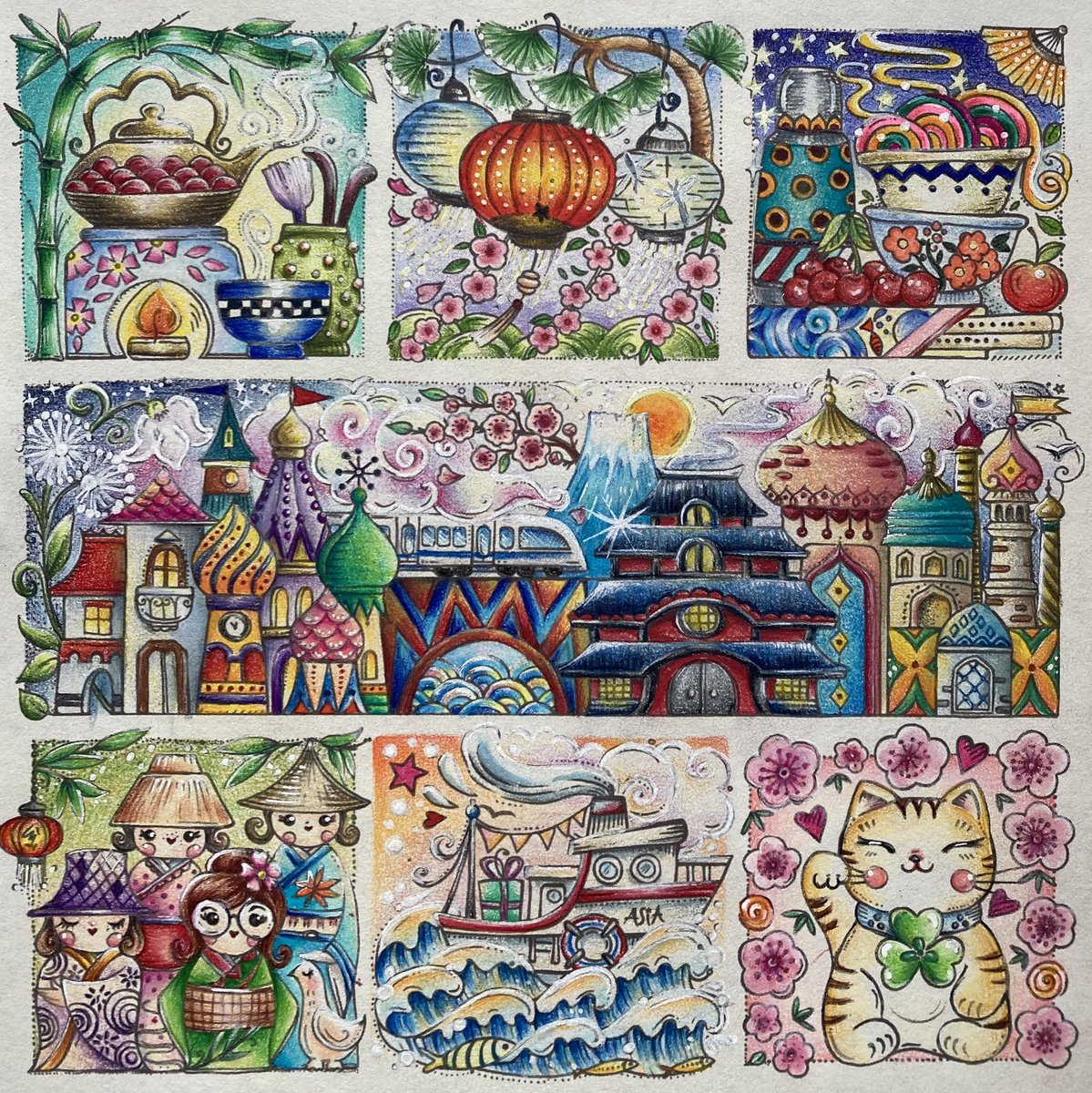 あさひるばん #大人の塗り絵 #色鉛筆 #meinereisedurcheuropa