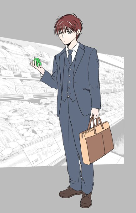 #4月10日短髪蔵まつり ありがとうございました🙇♀️初めて描いて下さった方も沢山いて嬉しかったです✨毎年描いて下さる方も、応援して下さった皆様にも感謝です✨ (先日普段より遅い時間にスーパー行きましたら、真新しいスーツでその場にそぐわない感じのお兄さんがいたのでそんな感じで描きました☺️)