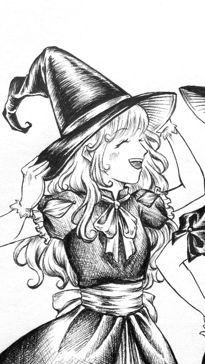#今月描いた絵を晒そう #ペン画 魔女っ子