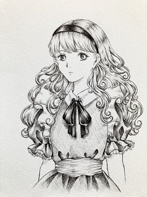 ペン画のアリス #ペン画 #みんなで楽しむTwitter展覧会 #絵描きさんと繋がりたい #創作イラ #創作の狼煙 #drawing #inkart