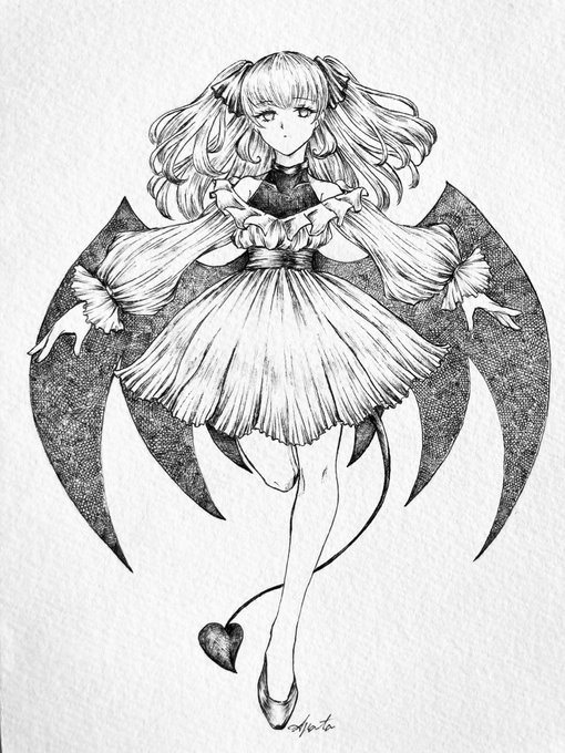 😈🤍 #ペン画 #みんなで楽しむTwitter展覧会 #絵描きさんと繋がりたい #創作イラ #創作の狼煙 #drawing