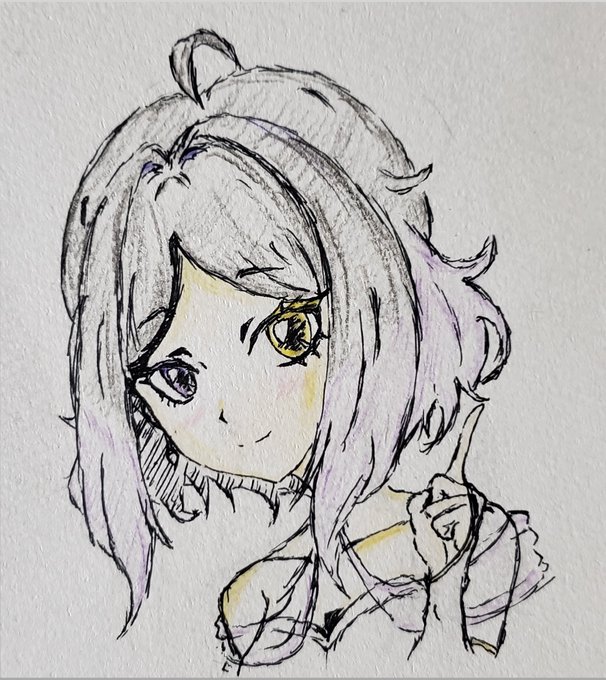犬神璃月さん(2回目) 人差し指のポーズはいろいろと参考にしつつ描きました #りつなーと