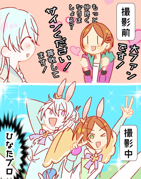 33 517 「どうどう? 似合ってる?」 仲の良い衣装さんにヘアメを見せに来るひなたくん ※あんずさんで描こうとしたらひなたくんに並々ならぬ緊張が走ったので止めた 23/03/28 12:12