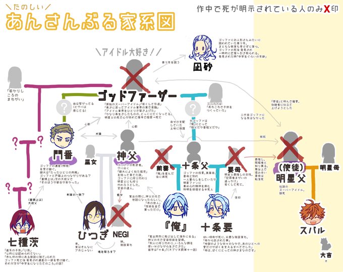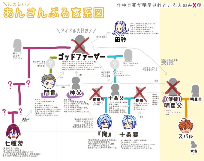 ⚠️ネタバレしかない あんさんぶる家系図 ゴッドファーザー関連 間違いあったらあれなので暫定版ってことで…🙏 間違い見つけたらおしえてください!