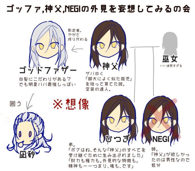 ※ネタバレ ※推測・想像です 今出てる情報とひつぎくんの外見から ゴッファの外見はこの系統(ひつぎ白髪ver.)じゃないかと想像してるんですが 真実はまだわからない