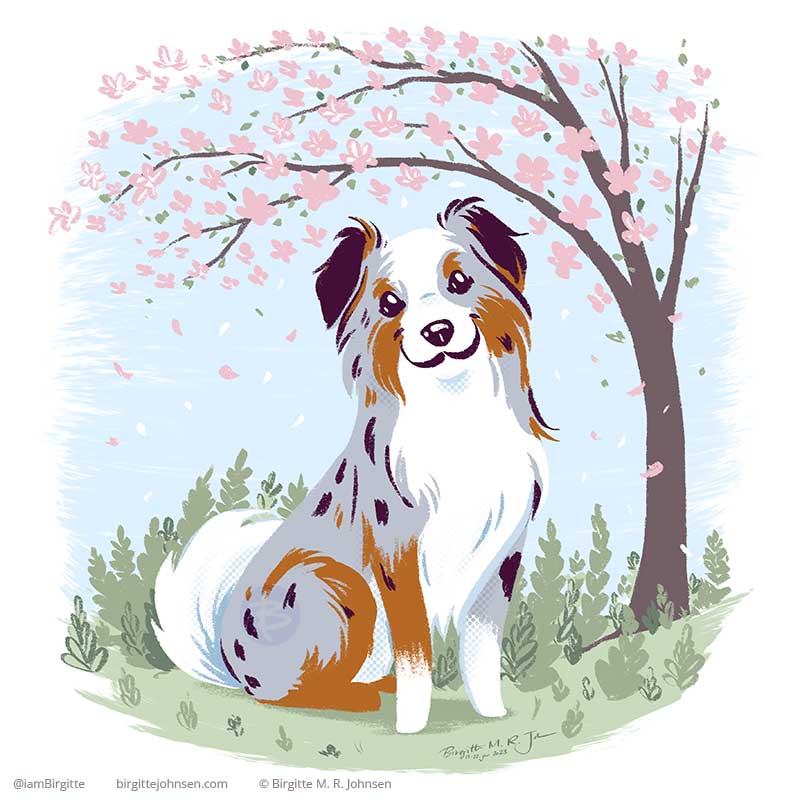 Decided to create a series of dogs, one for each season (still working on it, so please have patience!) So here's an Australian Shepherd for spring. #artists #illustrationart #dogIllustration