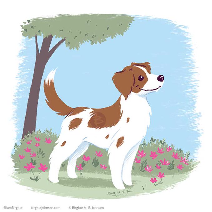 For afternoon/sunset I chose to go with a Border Collie. And I know, they are more commonly black and white, but I went with a dark brown version instead. #dog #illustration #ArtistOnTwitter