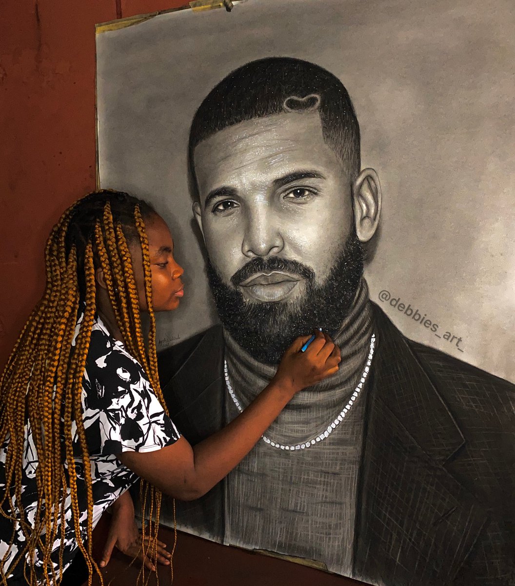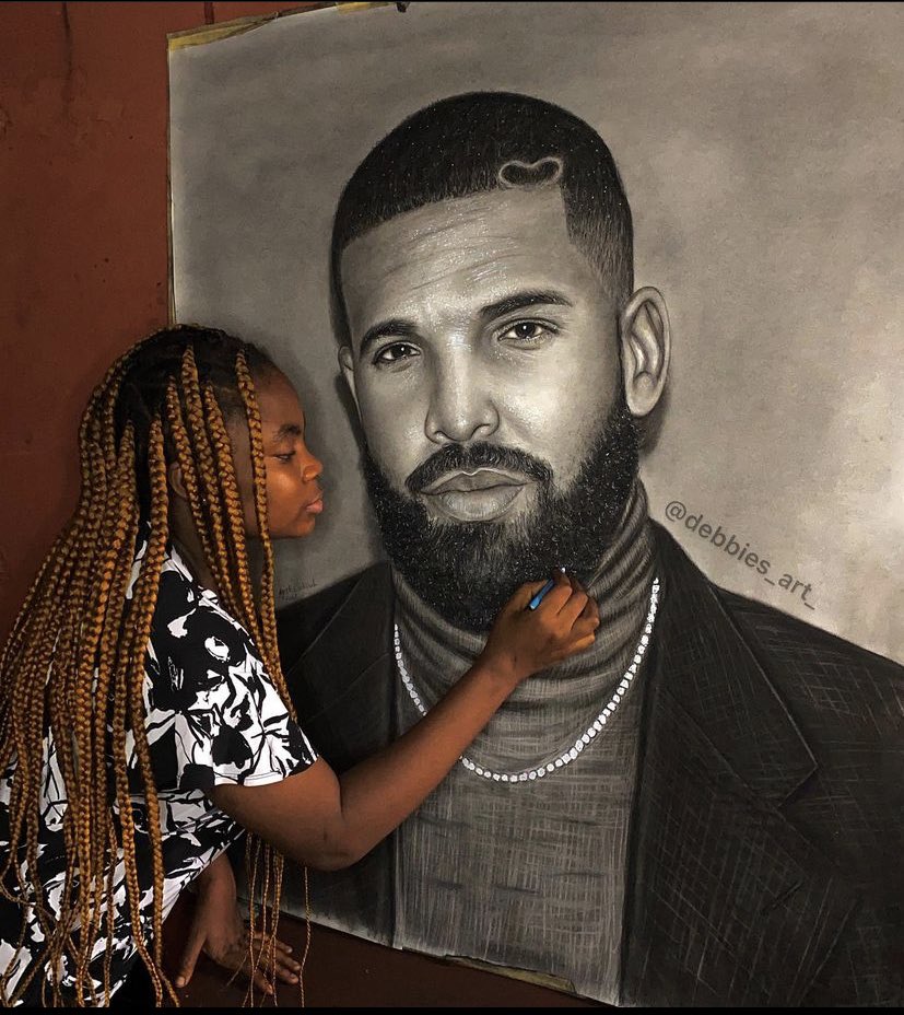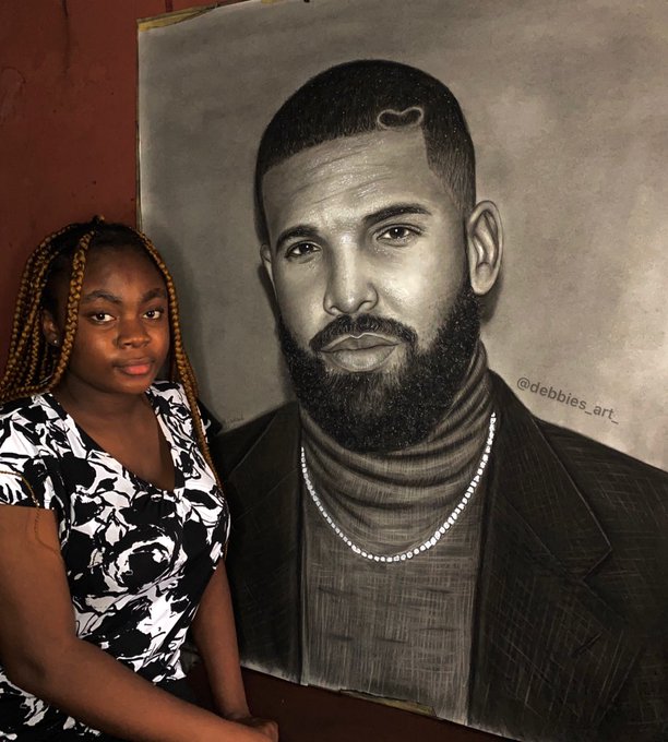 My name is Deborah Agali,19 years old artist from Nigeria,made this pencil sketch of @Drake . Please kindly help me retweet and tag him till he sees it🥺🙏🏽 #CLB