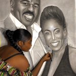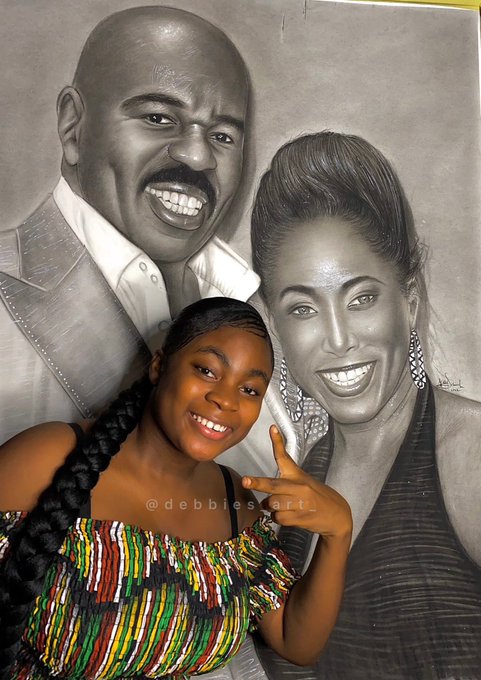 My name is Deborah Agali,20 years old Nigerian pencil artist,made this portrait of @IAmSteveHarvey and his lovely wife,Marjorie Harvey,took me 74 hours to create...please kindly help retweet,hopefully they see it🙏🏽