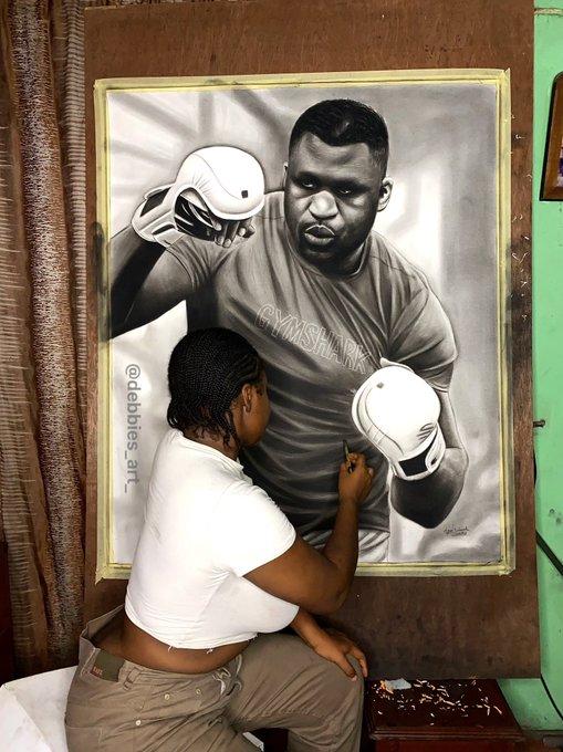 My name is Deborah Agali,a Nigerian pencil Artist,made this pencil portrait of the World Heavy Weight Champion @francis_ngannou in 96 hours,please kindly help retweet,hopefully he sees it🙏🏽 thank you .