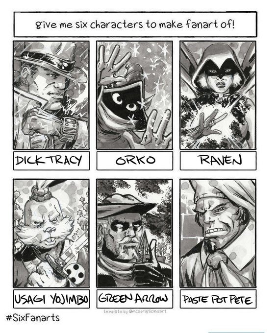 #sixfanarts Dick Tracy, Orko, Raven, Usagi Yojimbo, Green Arrow and Paste Pot Pete