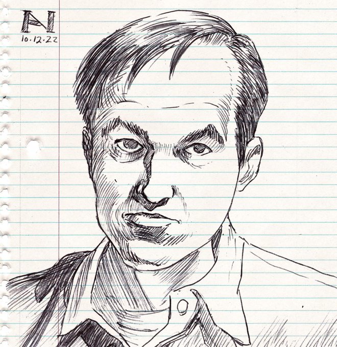 KAYFABETOBER / INKTOBER DAY 12 - JIM RUGG (In the style of @jimruggart) @CartoonKayfabe @EdPiskor @jimruggart #cartoonistkayfabe #kayfabetober #inktober #inktober2022 #Halloween #comics #jimrugg #artist #outlawcomics #portrait #notebook