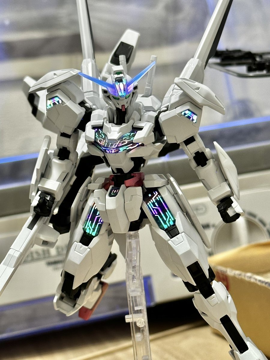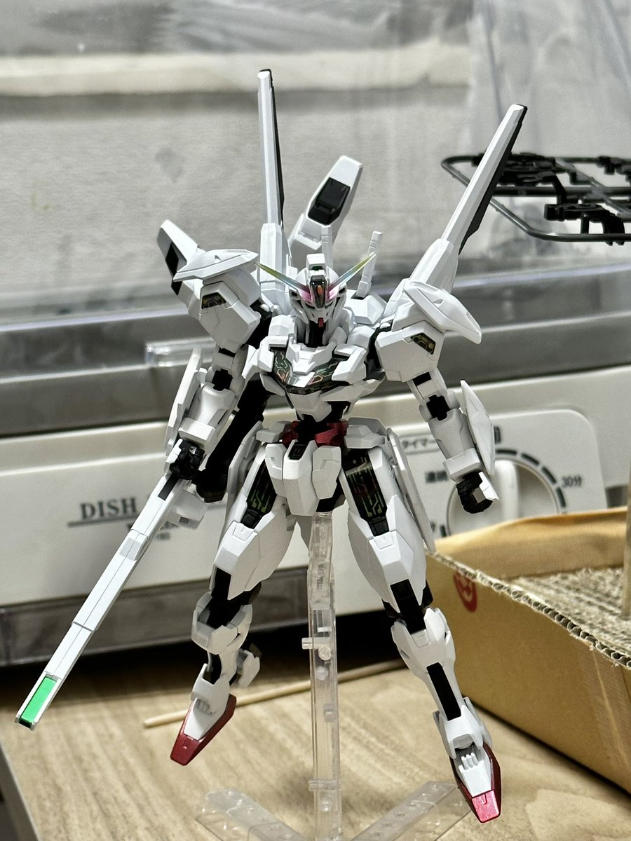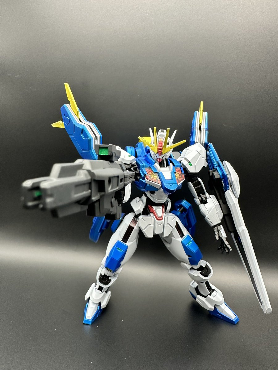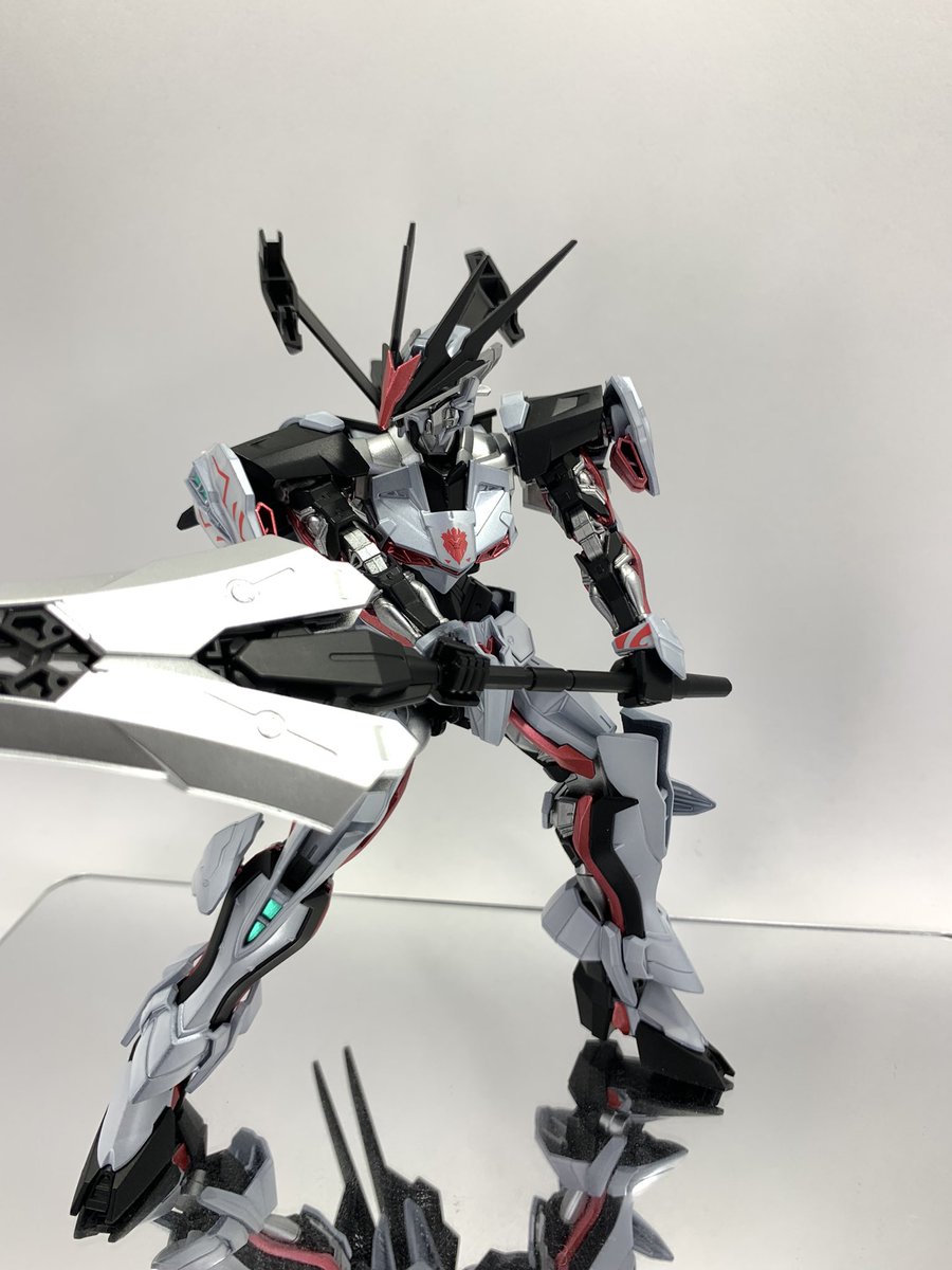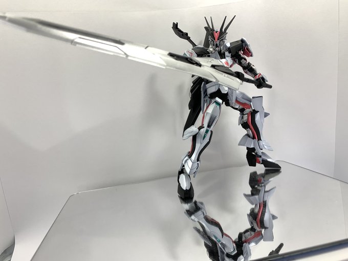 続いてロードアストレイ全塗装完成〜。 剣がデカすぎて撮影のほうが苦労した… 白はパールシルバー使ってみたけど分かりづらいな…😅 #ガンプラ #ガンプラの画像貼るとRTされると聞いて #ガンプラ好きな人と繋がりたい