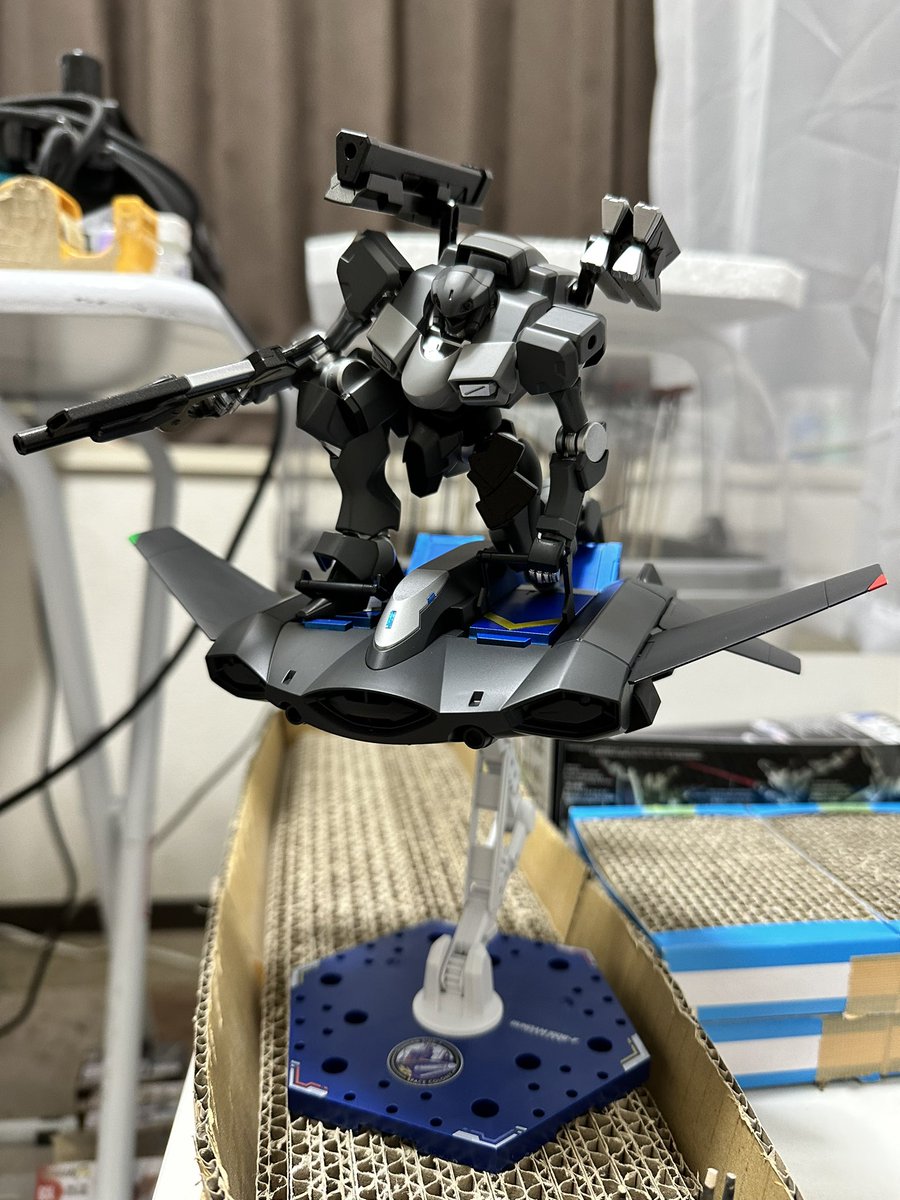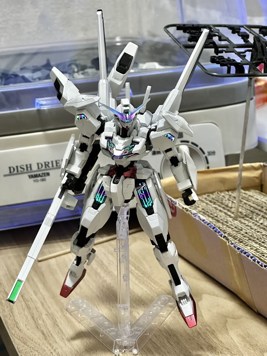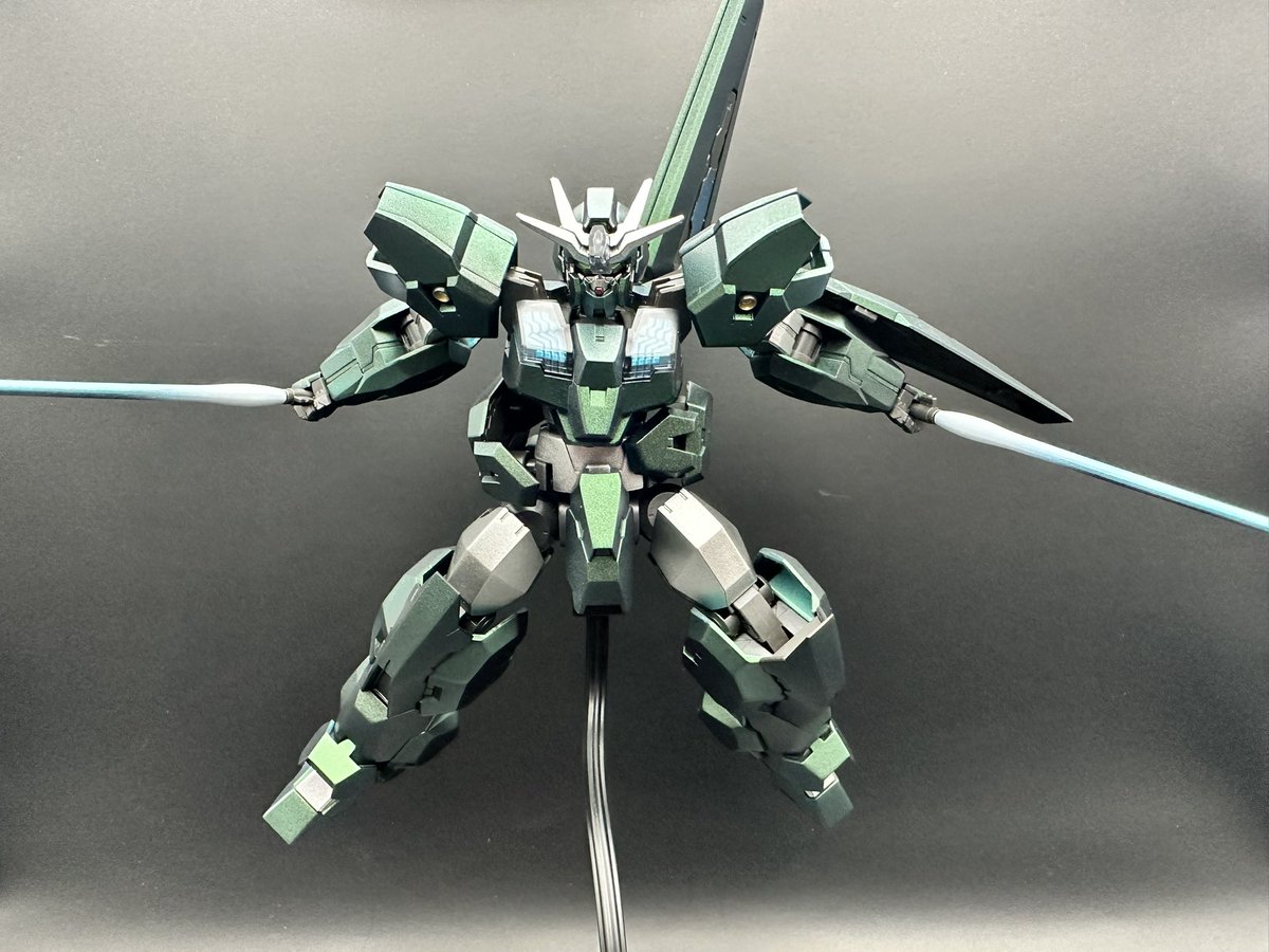 やっと体調回復したのでエアリアル改修型触ってましたが完成✨ 表面処理、洗浄無しから始めてます。 フライトユニットポン付け、余ったバーニアは腰に3mmプラ棒でマウント。 色合いは色々作例参考にしてます #ガンプラ #ガンプラの画像を貼るとRTされると聞いて #ガンプラ好きと繋がりたい