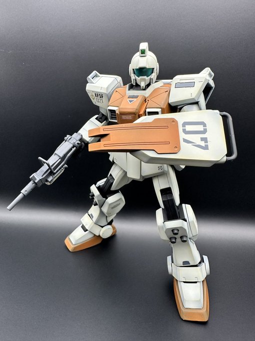おはようございますの時間にはちょい早い😲 真夜中に陸ジム完成〜 グラデ全塗装の軽いウェザリング仕上げです☺️ カッチョイイなやっぱり陸ジムは! 片膝曲げがちょい苦しいかな〜 #ガンプラ #ガンプラ好きとつながりたい #ガンプラの画像貼るとRTされると聞いて