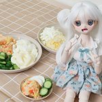 一個不經意地回頭 映入眼簾的是 戴著手工編織的草帽,手拿烤串 一頭蒂芬妮藍的獨眼小妹妹 彷彿夏日風情,餘韻猶存 -- 攝影棚持續趕工中 #伊卡麗之境 #BJD #MDDはいいぞ #oathofrose