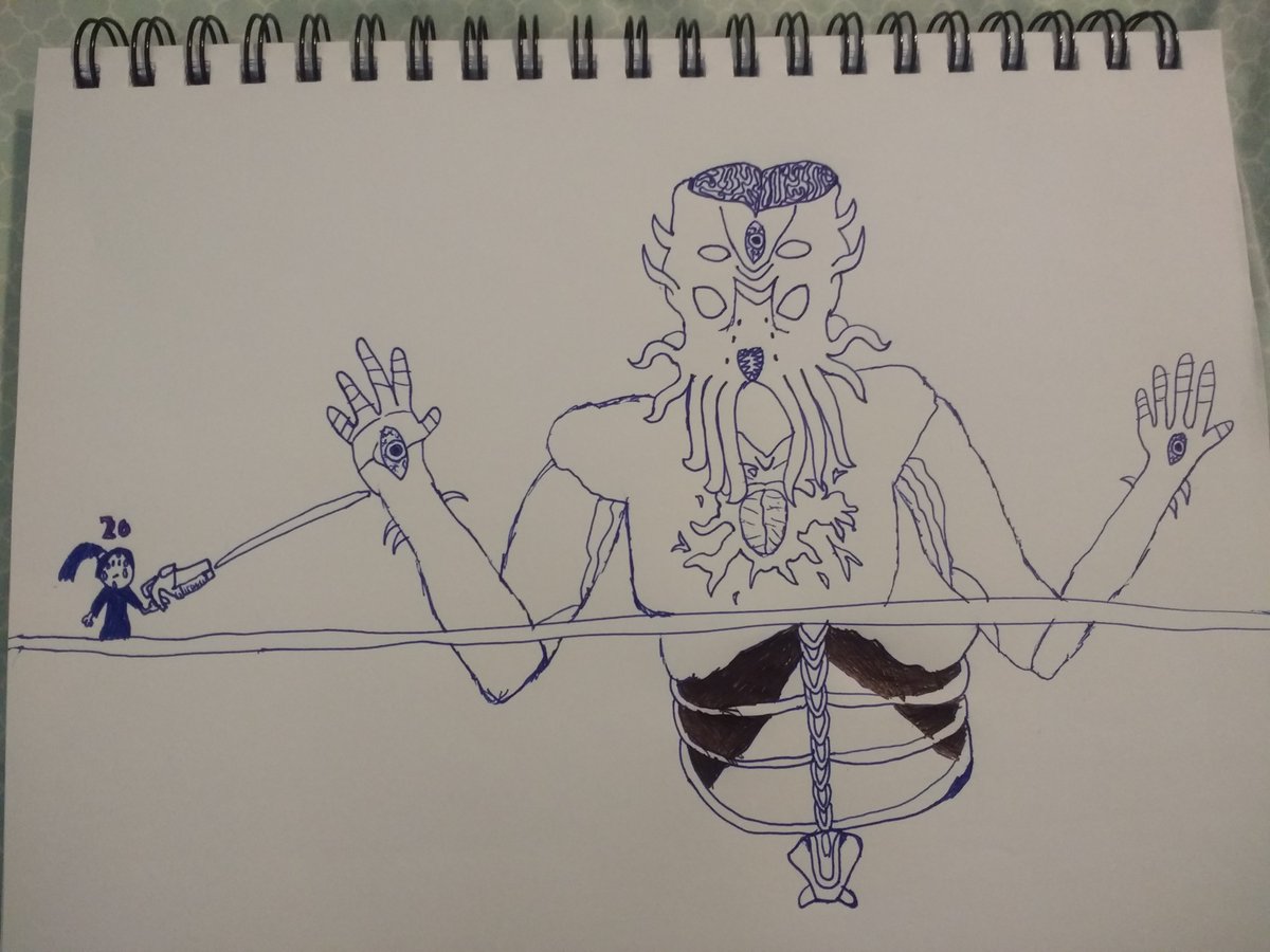 Day 9 of #inktober #inktober2021 Pressure My sister felt the most pressure in her life fighting the Moon Lord in Terraria so that's what she drew!