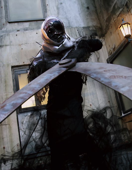 11 40 等身大のハサミ(木製) 羊の皮でできたケープ(もはや呪物) #過去に自分がコスプレ撮影に持ち込んだものでヤバめなものを教えてください 22/02/03 14:26