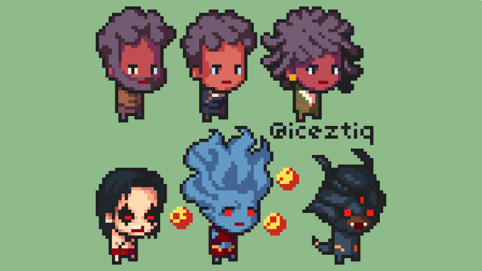 Some chars i made for @togeproductions first-ever Publisher's Sale on Steam store.steampowered.com/sale/togesale U can find some discounts, news, & wishlists if u head to the page. These are chars from @VanarisTactics & @risinghellgame #pixelart #indiegame