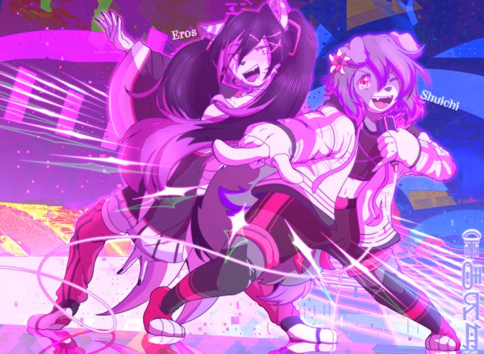 My fursona singing with @ShuichiSadouAI because I suddenly got vocaloid vibes when I looked at their fursona lol 🎤✨ ngl my fursona just looks like a bootleg miku wearing rin's hairpins in this💀 #furry #furryartwork #Furryartist