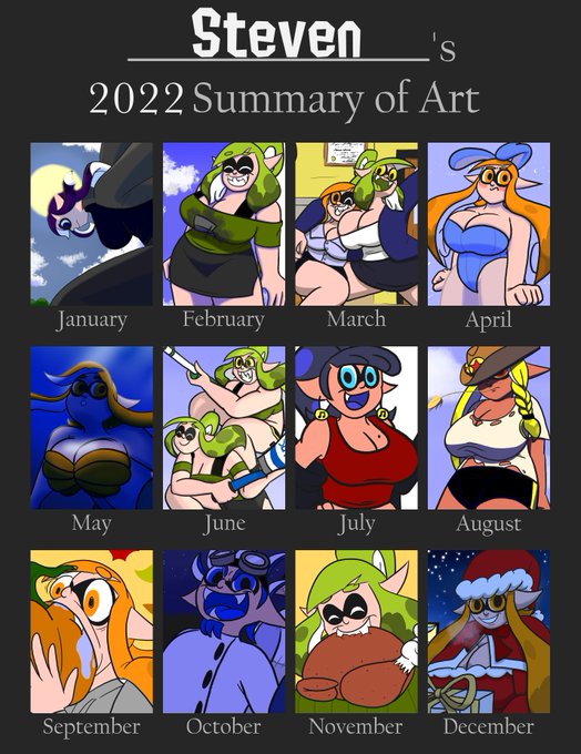 My 2022 Art Summary. I...don’t know how to feel about this one. Aside from a few pieces here and there over the past year, I feel like I kinda stagnated. Well, maybe very slight improvements in some spots, but still. (1/2) #Splatoon #Splatoon3 #Artsummary2022