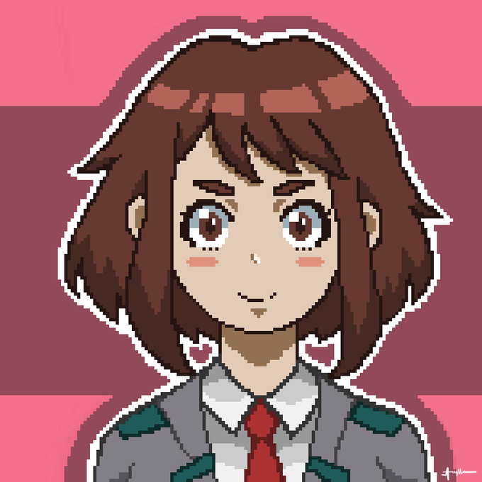 Hiiiiii~ I tried doing pixel art for the first time!!! Glad that it turned out nice~ Here's Ochako Uraraka from My Hero Academia! #MyHeroAcademia #BokuNoHeroAcademia #Uraraka #Uravity #BNHA #MHA #fanart #anime #Ochakouraraka #pixelart #pixel_dailies #digitalart #art