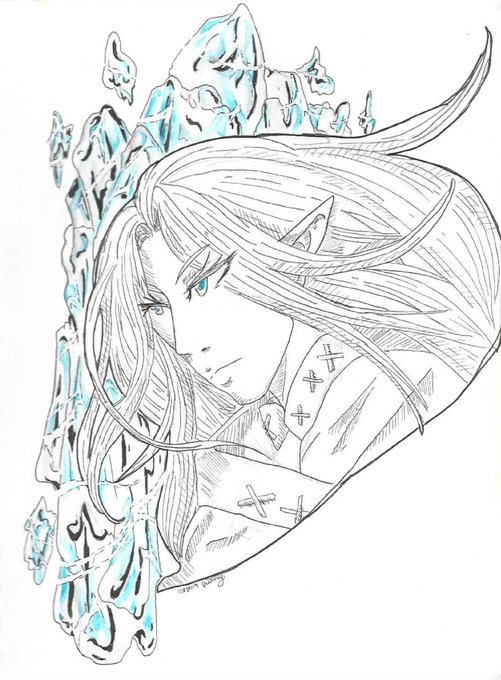 I finally finished Lady Iceheart!❄️ I had a lot of fun drawing the crystal ice on the background, I tried different inking techniques for her and I really enjoyed it. I want to draw more portraits now! #inktober #ysayle #ysayledangoulin #ladyiceheart #FFXIV #FFXIVART #shiva