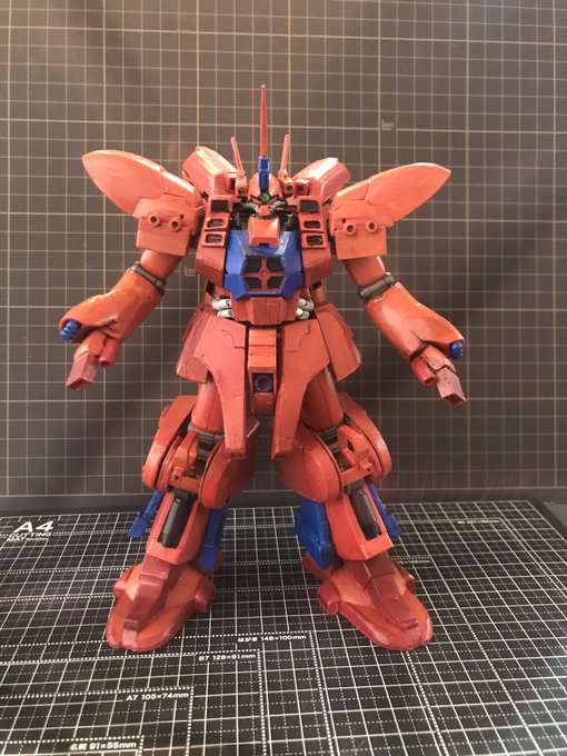 よーし完成ー! 今回はちゃんと可動するぞい ゲーマルクっぽくなったな😆 よしよし 色塗りまじでやんなっちゃう😖 写真いっぱい撮ろーっと #ガンプラ #ガンプラ好きと繋がりたい #ゲーマルク