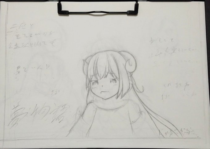 道具に占領されて画材広げられないから絵描けない?ならば下絵を量産!!() (この2日で取り敢えずこの3枚ここ迄描けました。) #つながるホロライブDAY2 #つのまきあーと #プロテインザスバル #ルーナート #しょこらーと #ししらーと #LamyArt