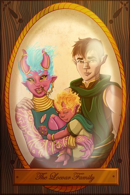 Commission I did for @TheGreenScorpion of his dnd character Loch, with his wife Shakti, and son Shiva! #illustration #dnd #artistsontwitter #CSP #dndart
