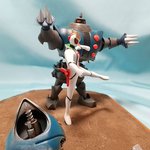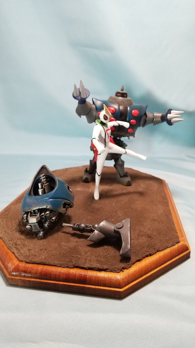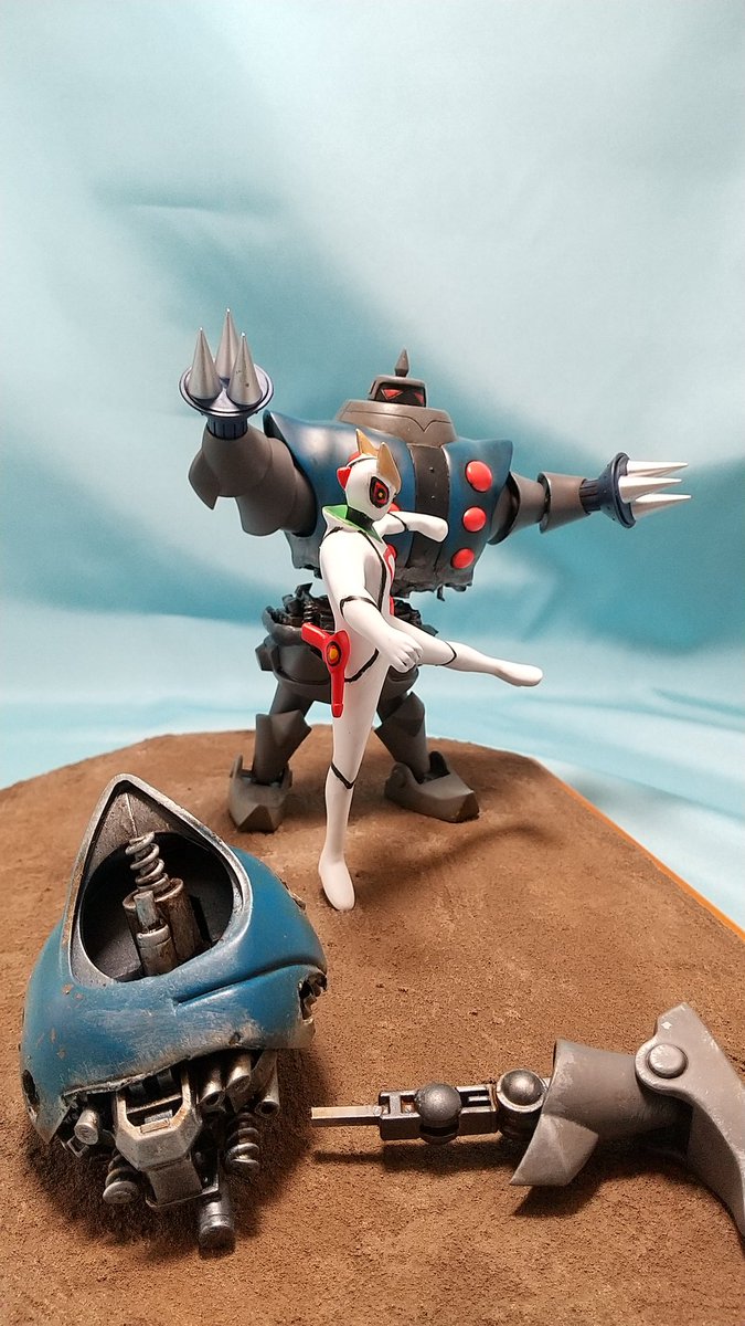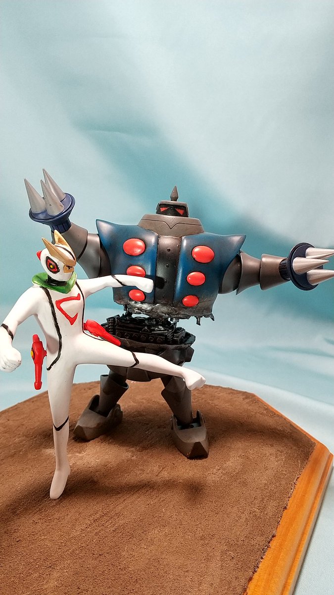 #今月作ったプラモ晒そうぜ 今年1つ目、コトブキヤのツメロボットと、プライズフィギュアをレジンキャストに複製改造のキャシャーンのジオラマ。このキャシャーンの敵ロボットをプラキット化したコトブキヤの、「昭和模型少年クラブ」というシリーズはキャシャーンで終わったのでしょうか?