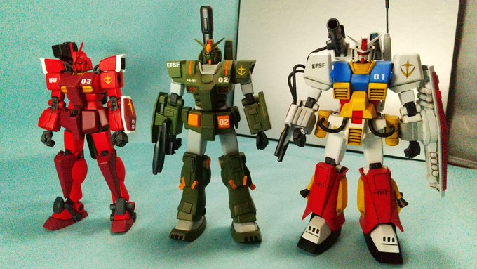 #ガンプラ #ガンプラの画像貼るとRTされると聞いて おはようございます。前回のフルアーマーガンダムに続き、アメイジングレッドウォーリア改造のレッドウォーリアが完成しました。三体揃いました。