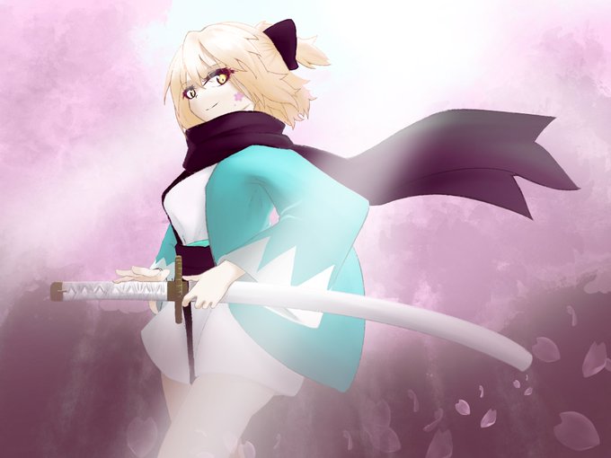 4 13 #今月描いた絵を晒そう 多分10枚くらい描いたけどこれ1枚載せます 桜吹雪の沖田さん 22/08/31 23:59