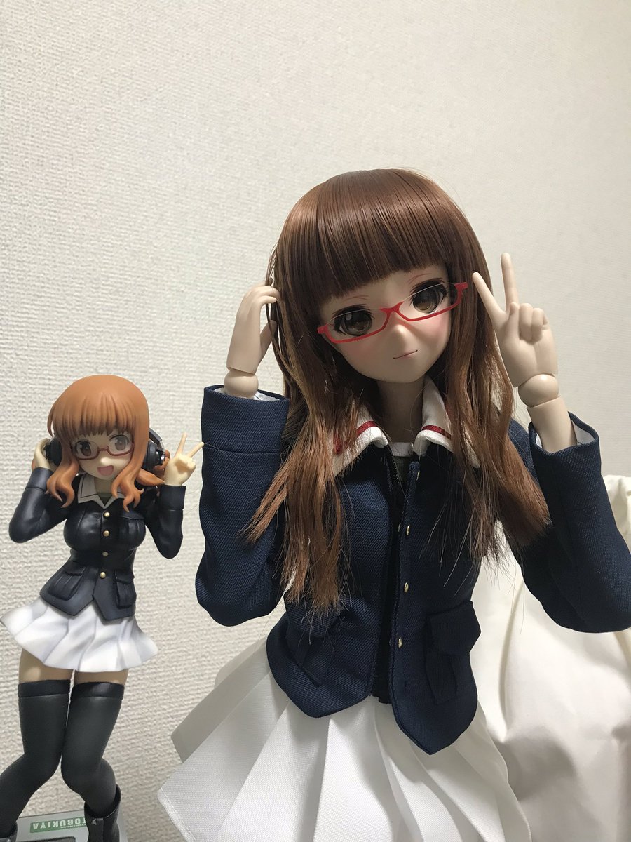 きた子:今日は❗️当家のかわいい 担当な梨乃っちお迎え記念日な事も近いから最大の特徴❓を紹介するよー❗️腕パーツの関係で梨乃っちは尊敬する某戦車アニメのよんちゃいのポーズが出来ない❗️ 梨乃:きたちゃん後で裏に来て💢 #RHっこ #MDDはいいぞ