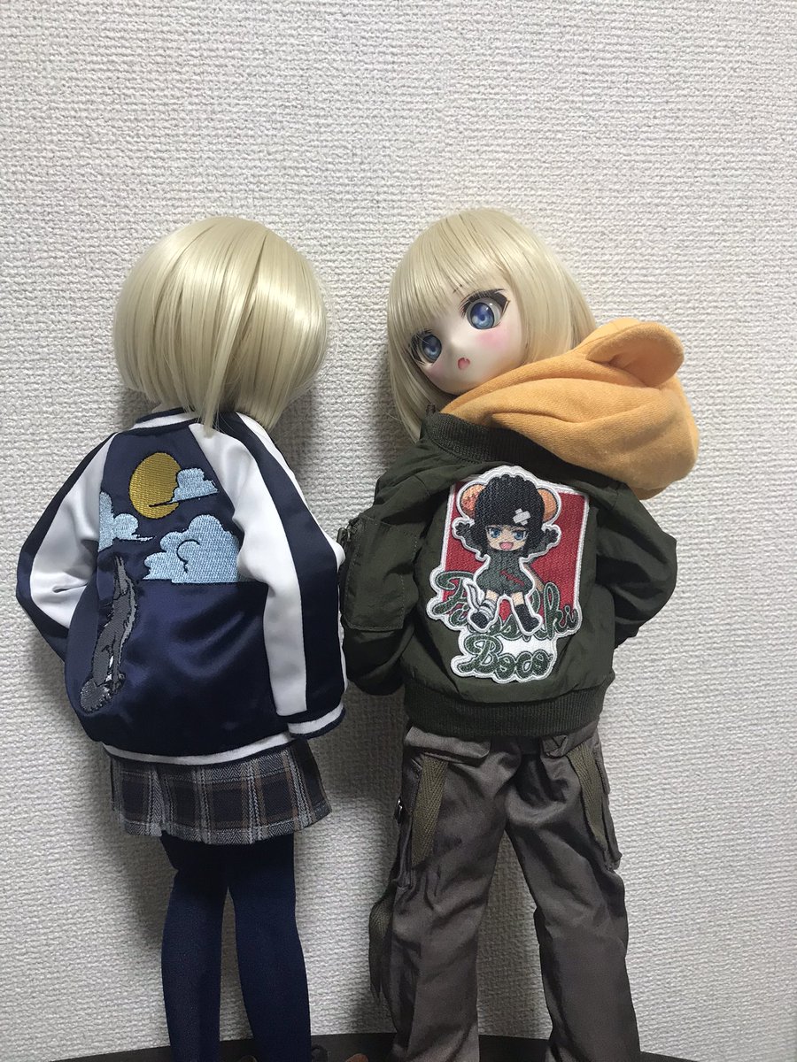 梨乃:私の尊敬するカッちゃんパイセンのバックプリントのフライトジャンパーは私の宝物よ❗️ きた子:ならぽん子姉さんからもらったスカジャンは? 梨乃:それはそれで別格や…って言うか…きたちゃん勝手に着るな〜💢 #RHっこ #MDDはいいぞ