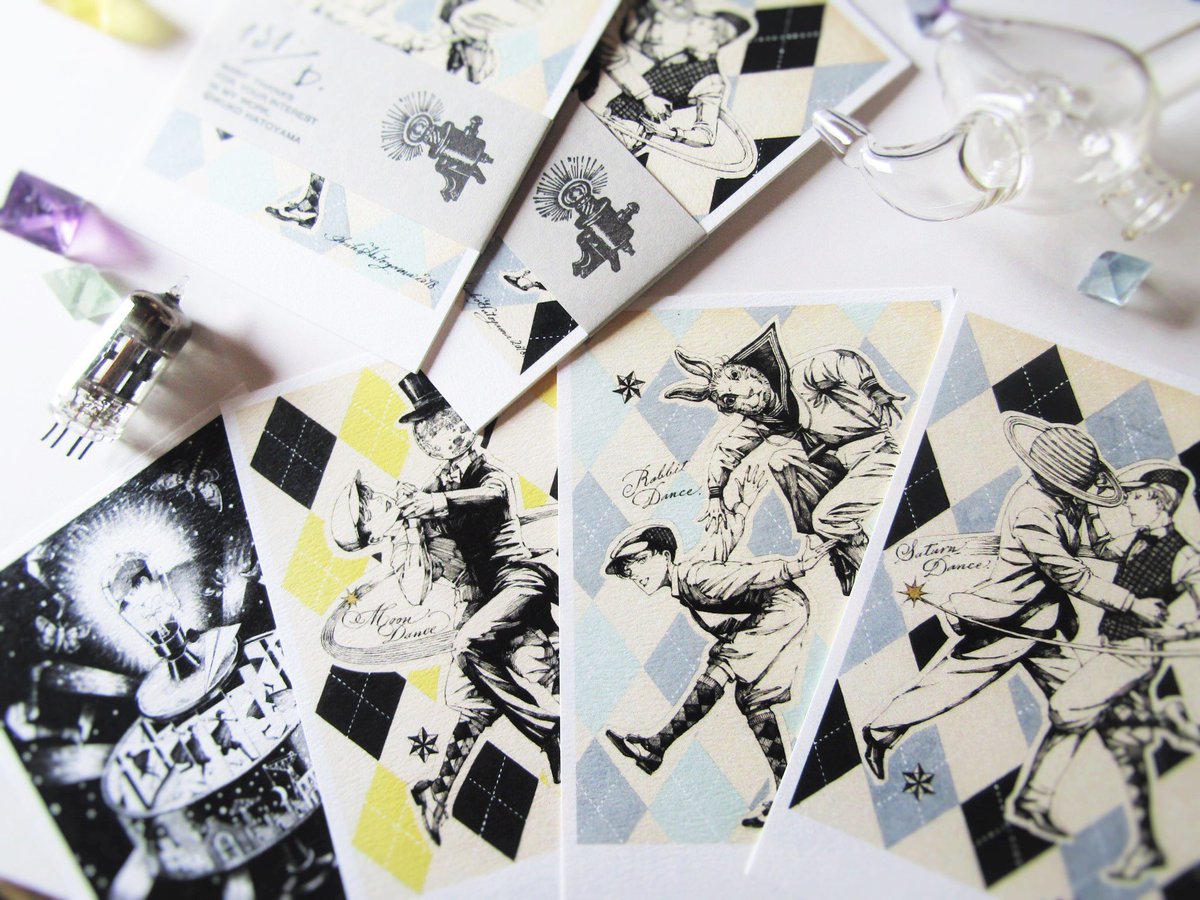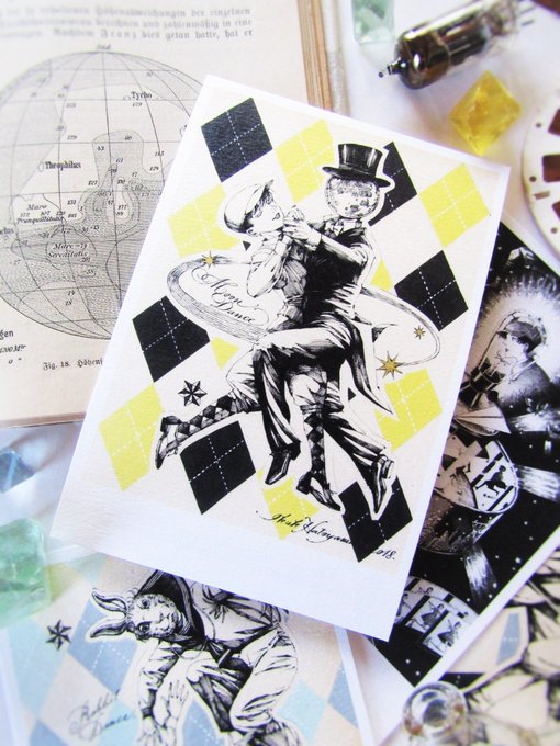 中秋の名月の今宵、シルクハットの満月とワルツを、セーラー服のウサギの少年とJiveのステップでダンスは如何? ポストカードセットは明日9/11の23:00まで、アフター盆マルシェ通販にてお求め頂けます。コラボレーション作品は木彫作品の種類が其々一点ずつになりました。🌝 ernest.stores.jp